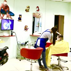 У нас созданы все условия для маленьких непосед: ярко оформленный интерьер помещения, игровая зона. Маленького модника встречает улыбчивый персонал, в его индивидуальное пользование предоставляется личный автотранспорт с кучей кнопок, заменяющий обычное парикмахерское кресло. И вот юный водитель уже абсолютно не обращает внимания на то, что тётя делает с его волосами. Оказывается, что стричься не только не страшно, но и ужасно интересно!